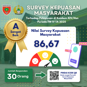 Tanpa Kategori Tanpa KategoriDecember 31, 2025April 8, 2026bykesdamNo Comments SURVEY KEPUASAN MASYARAKAT PERIODE TW IV TA 2025 Post navigation Previous PostHASIL SURVEI PERSEPSI ANTI KORUPSI KESDAM XIV/HSN TRIWULAN IV TAHUN 2025 Next PostHASIL SURVEI PERSEPSI ANTI KORUPSI KESDAM XIV/HSN TRIWULAN I TAHUN 2026